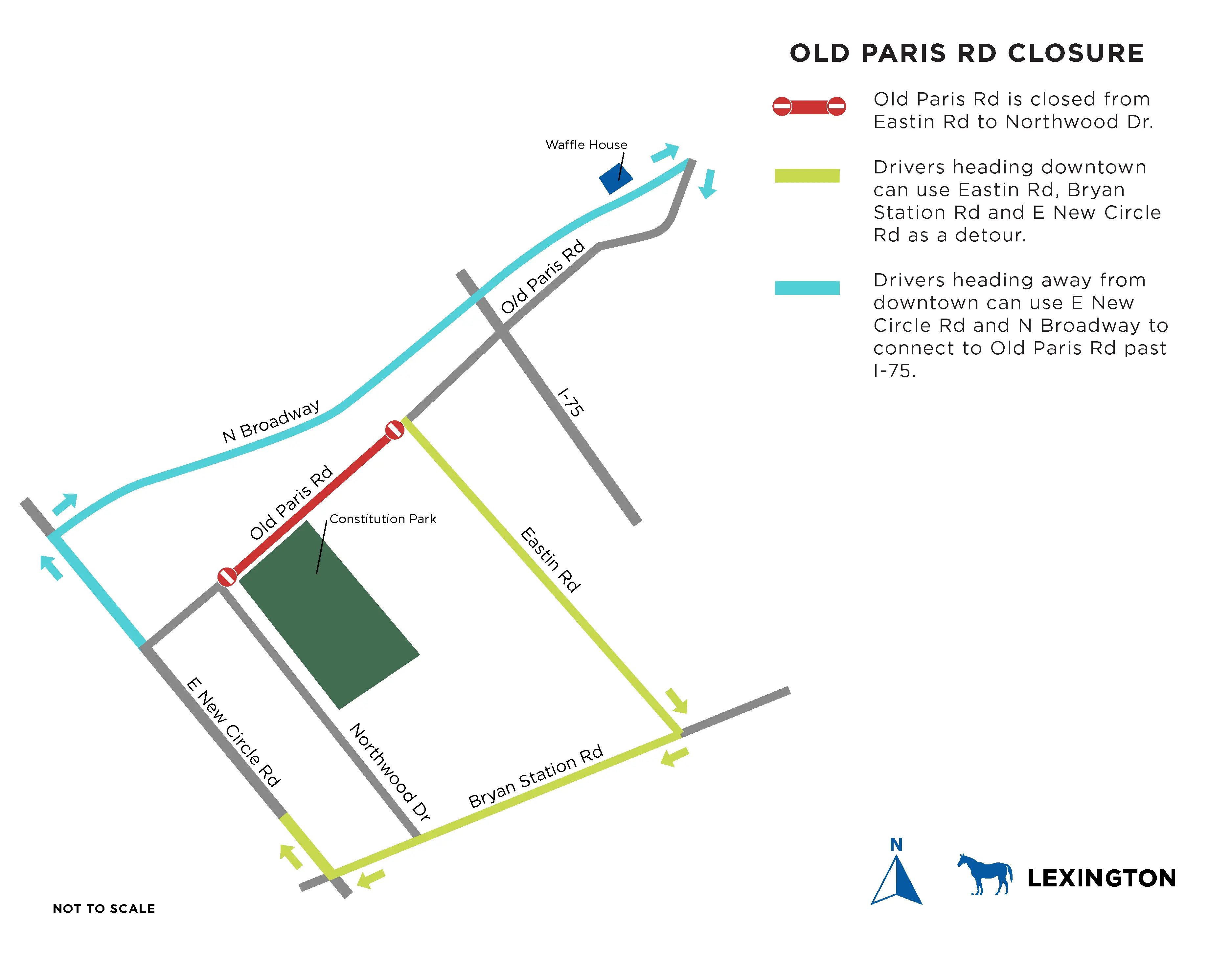 Commuters are encouraged to use North Broadway while Old Paris Road is closed. Drivers headed toward downtown can detour from Old Paris Road to Eastin Road, Bryan Station Road and New Circle Road. Drivers headed outbound should use North Broadway to reach Old Paris Road.